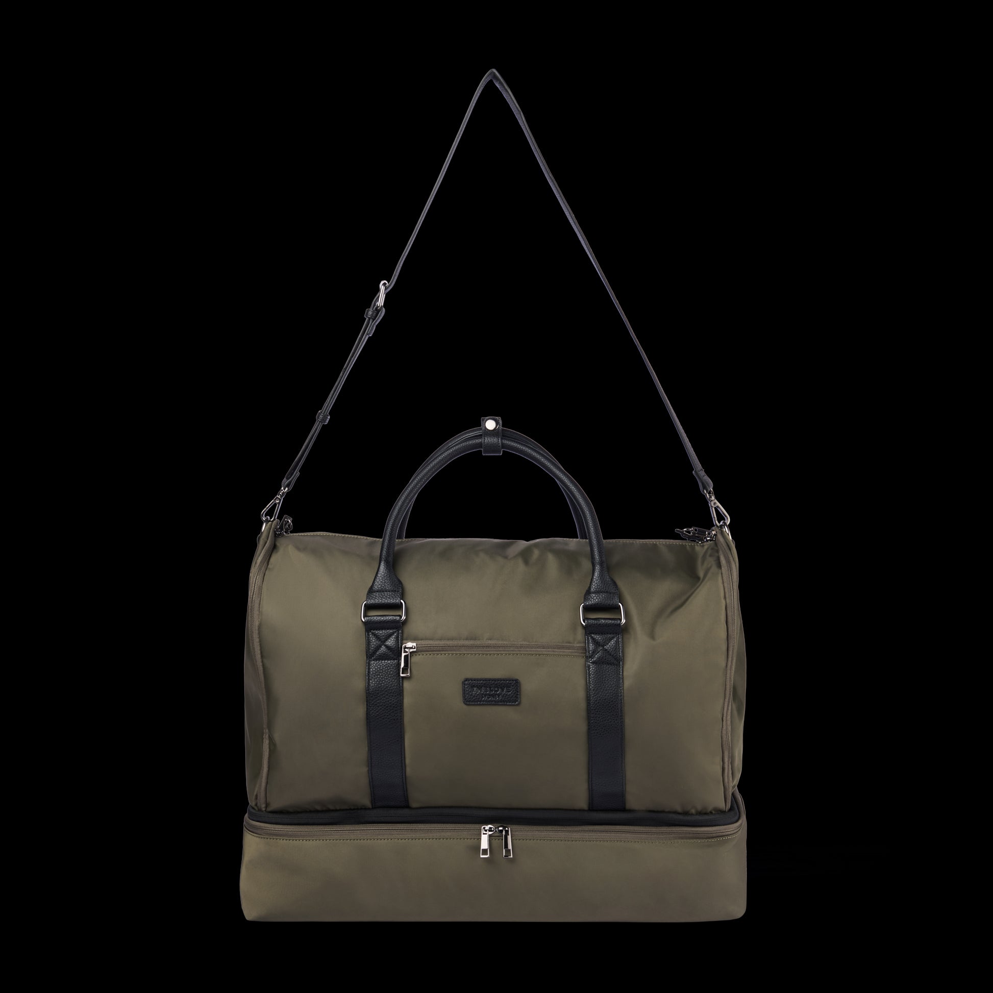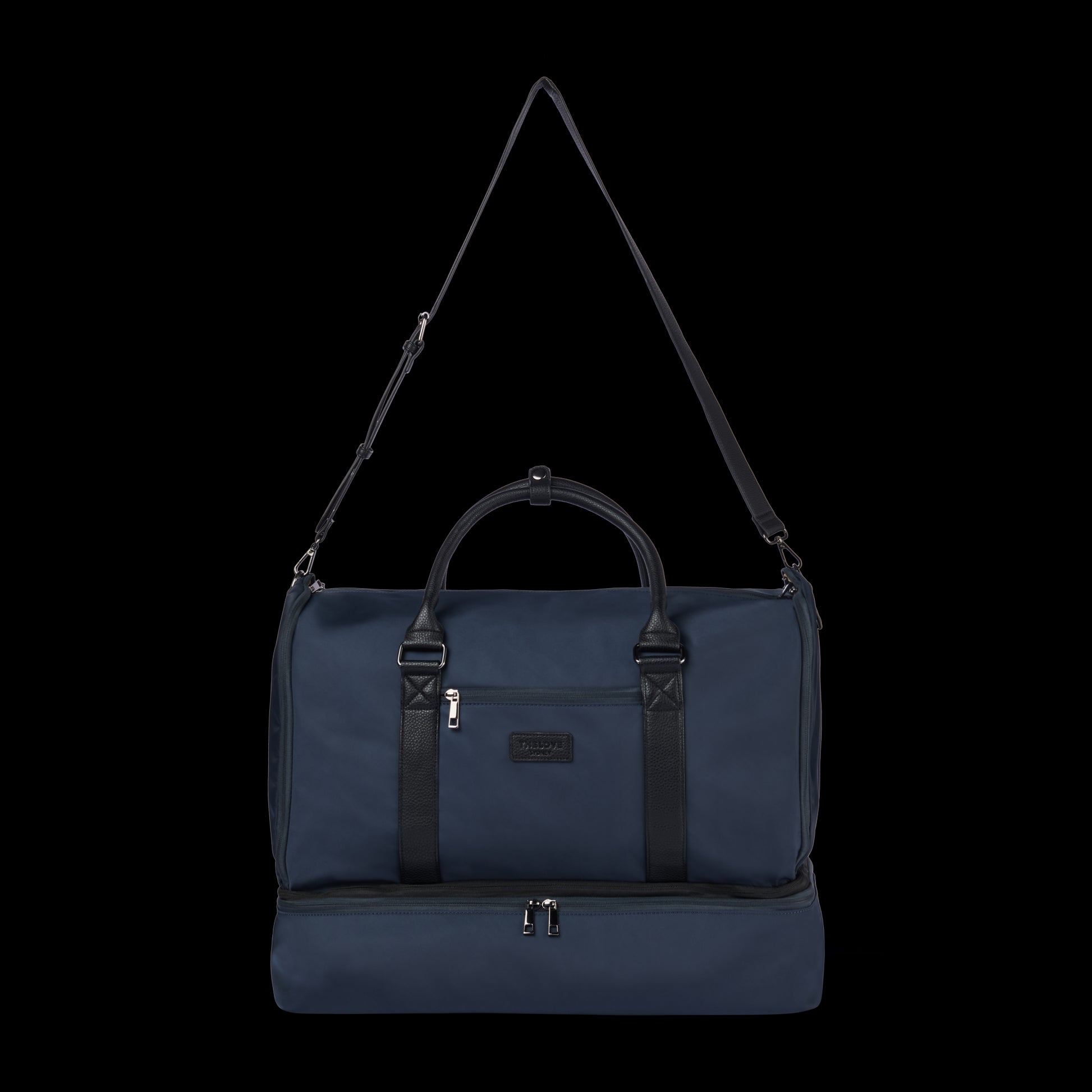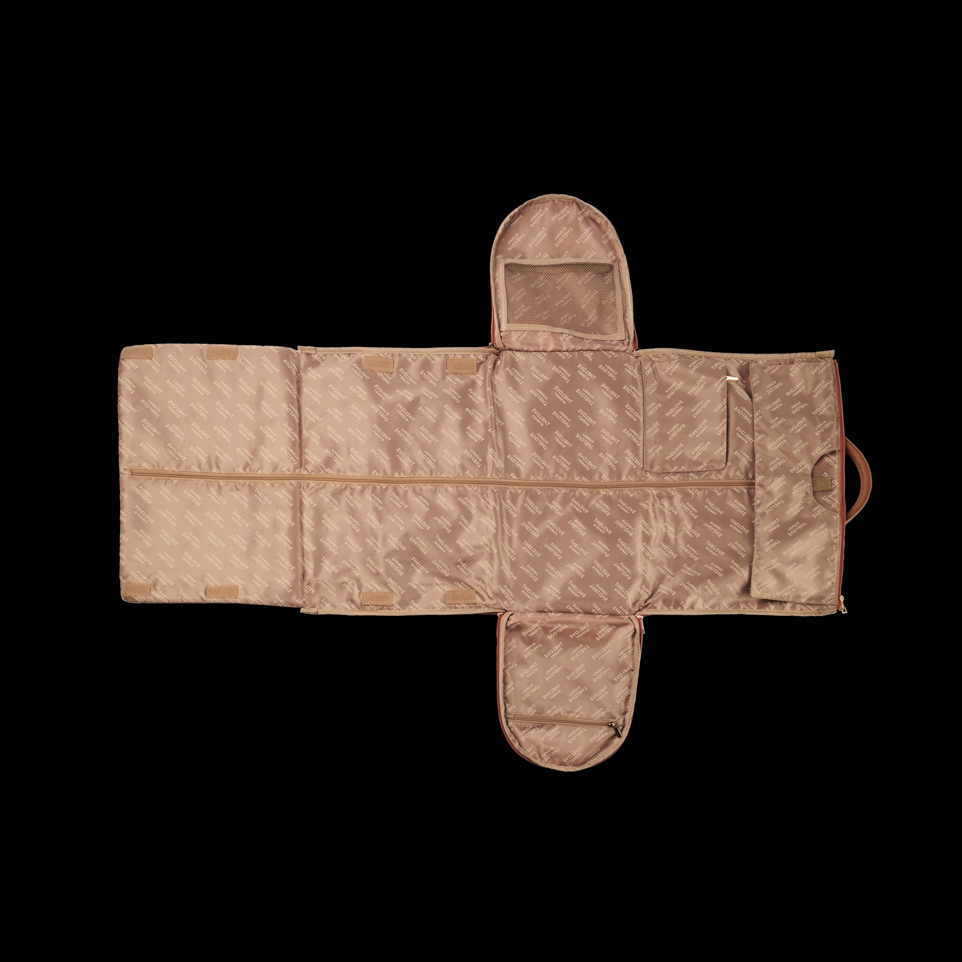 This Travel Suit Bag combines lightweight design with robust durability, made from recycled nylon and featuring handles crafted from recycled leather. Its water-resistant fabric safeguards your garments against the elements. At only 1kg, it offers effortless portability without excess weight. Equipped with a luggage slide and trolley slot, it easily secures to your suitcase for smooth travel. Additionally, it includes a detachable shoe compartment that fits three pairs of women's shoes or two pairs of men's. Perfect for discerning travellers who value both eco-conscious materials and practical functionality.